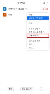 4) 참가자 아이콘 클릭 후 '이름바꾸기' 클릭 : 이름_학과 로 변경하여 프로그램 참여
